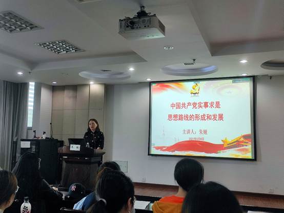 于理科楼C303开展主题理论党课,我校马克思主义学院副教授朱娅老师受邀做“中国共产党实事求是思想路线的形成和发展”专题报告。党课由辅导员李艳丹主持,学院入党积极分子参加。