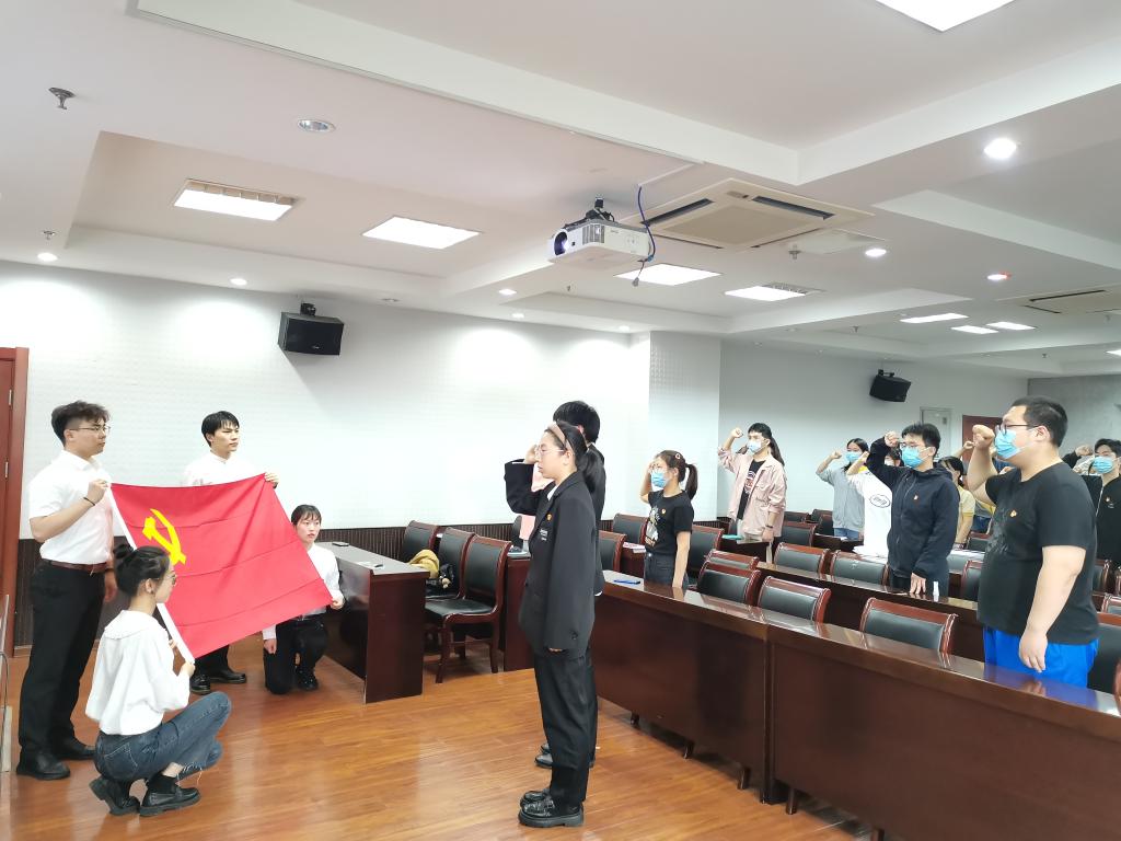 在雄壮的国际歌声中,开班典礼拉开帷幕,全体新发展党员面向党旗庄严宣誓。