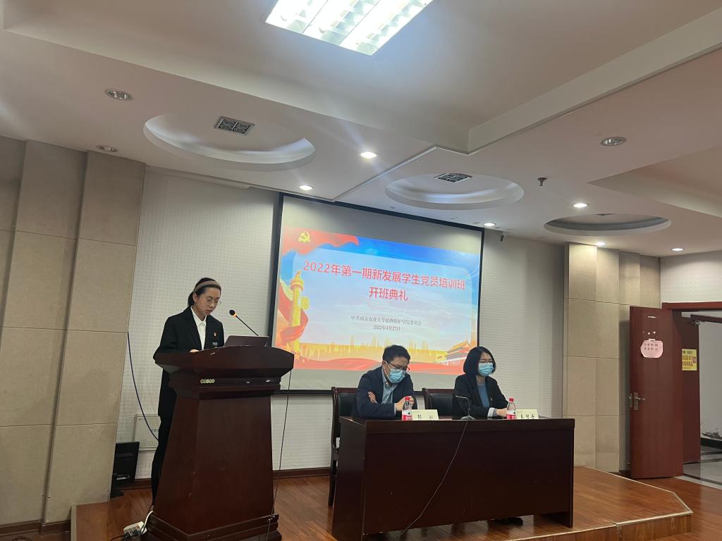 分党校2022年第一期新发展学生党员培训班开班典礼在理科楼C303、C305举办。学院党委书记邵刚、党委副书记吴智丹出席,63名预备党员参加,开班典礼由本科生辅导员李艳丹主持。