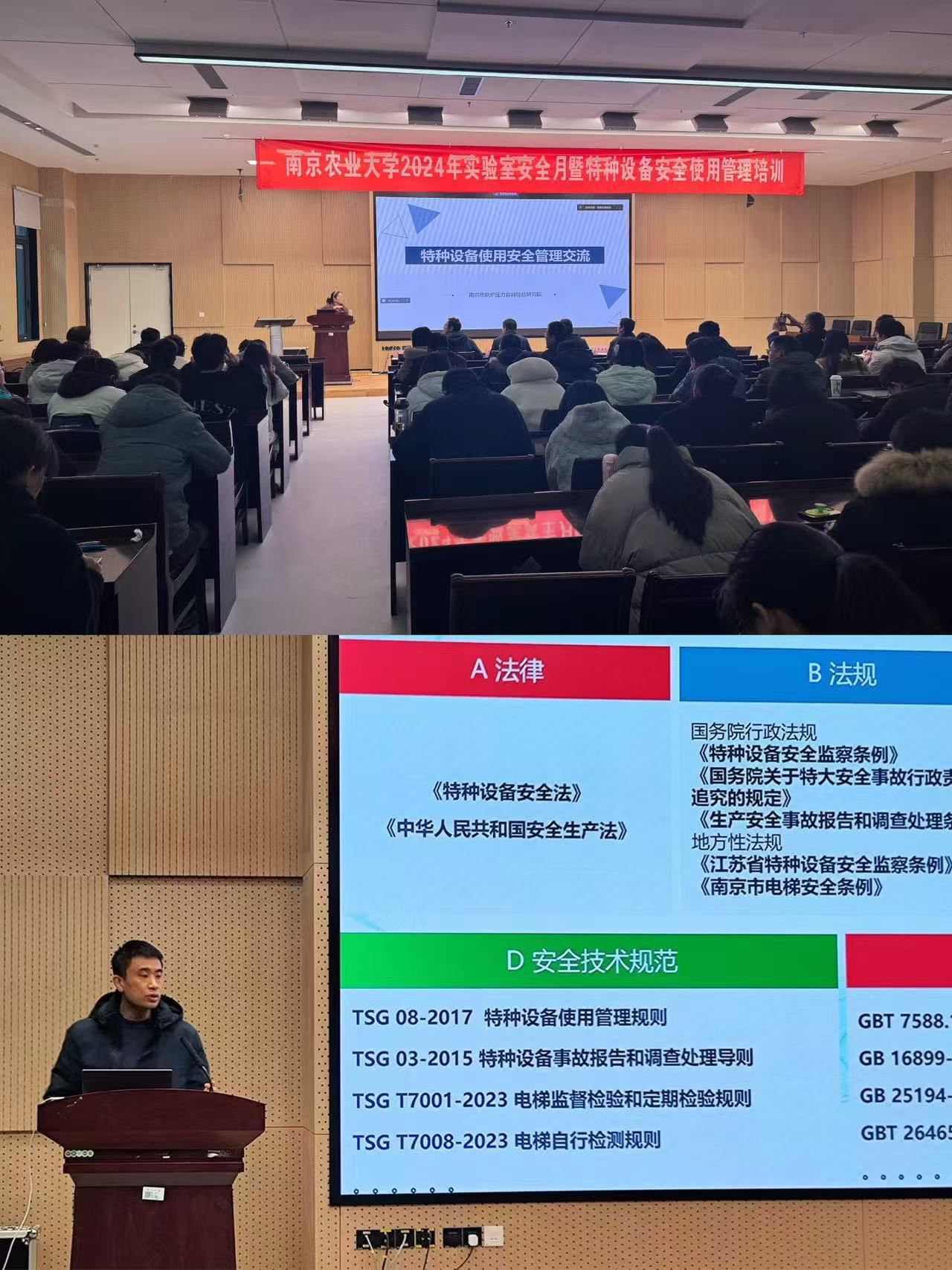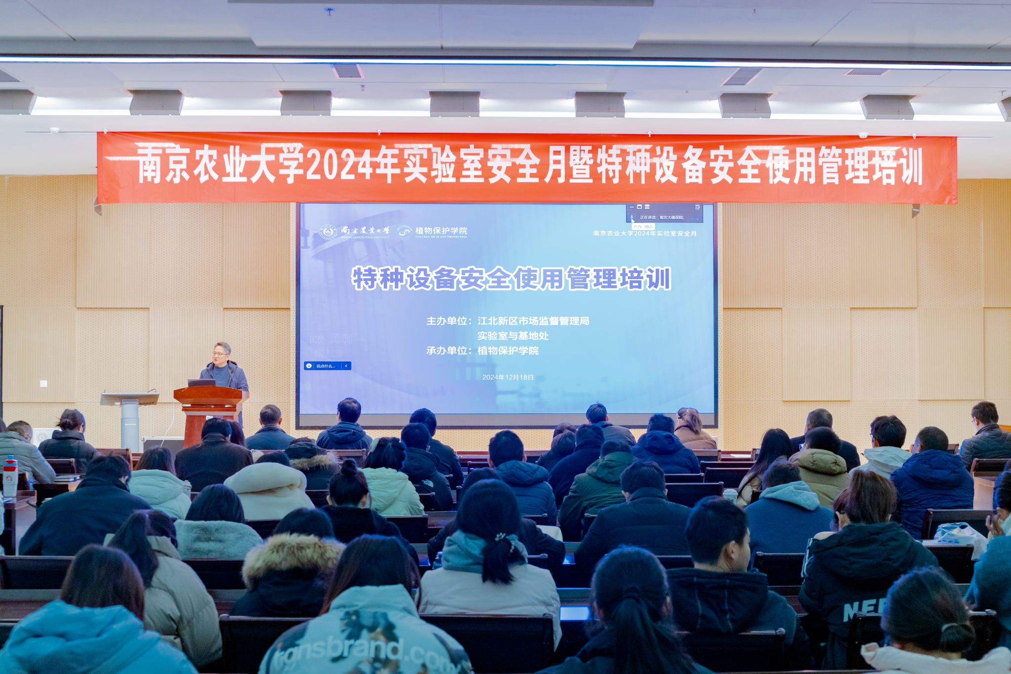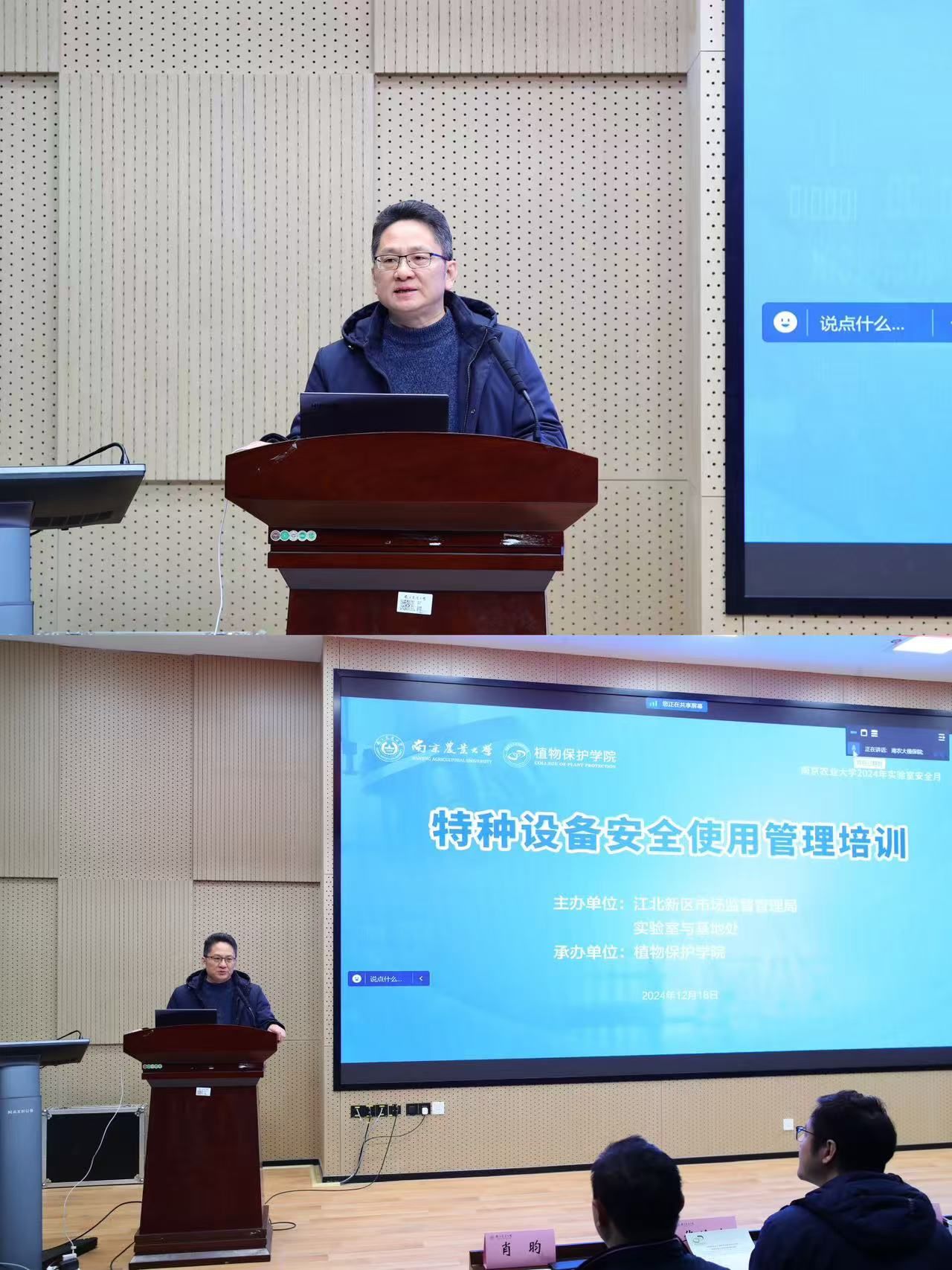 承办的特种设备安全使用管理培训在滨江校区21号楼114报告厅举行,江北新区市场监督管理局副局长徐立兵、特设办主任陈洋,南京农业大学实验室与基地处副处长朱映光、博彩投注