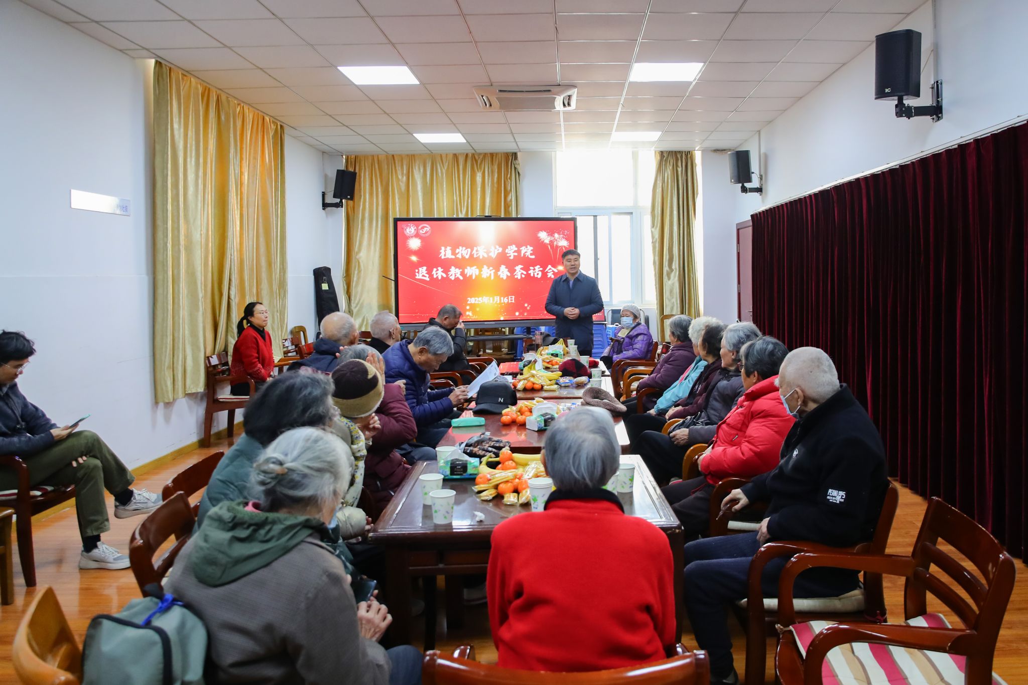 退休教师2025年迎新春茶话会在卫岗校区老年活动中心召开。院党委书记许承保,院办公室主任岳丽娜,辅导员罗舜文、王梵钰与博彩投注
