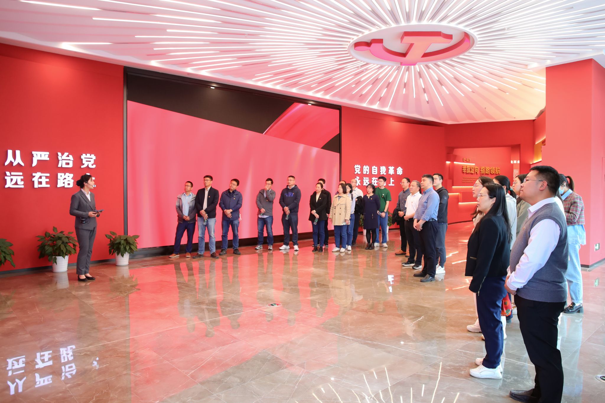 在基地工作人员的引导下,大家集中观看了专题视频《永远吹冲锋号》,依次参观了“举旗定向 指路领航”“以案明纪 挺纪在前”“以案促改 系统施治”“以案为鉴 警钟长鸣”四个展厅。基地综合运用实物展陈、影像资料等形式,聚焦重点问题、重点领域和重点对象,深刻剖析了近年来发生在江苏省范围内的违纪违法典型案例,引导党员、干部深学细悟习近平总书记关于加强党的作风建设的重要论述,深刻领会党的十八大以来以习近平同志为核心的党中央坚持管党治党取得的历史性成就,同时结合江苏实际,展示了我省坚决扛起全面从严治党重大政治责任、构建基于江苏实践的监督体系的生动实践。