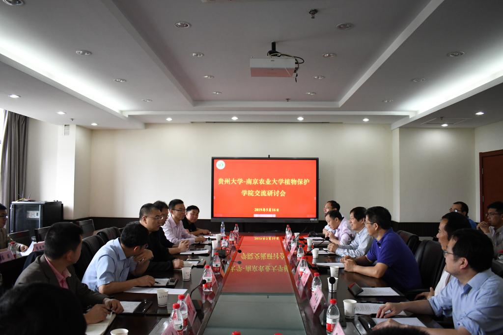 的基本情况,并就学科建设、师资引进、人才培养、国际交流合作等方面进行了工作经验分享。杨松院长介绍了贵州大学的历史沿革、学科发展和教学科研的基本情况,并表示希望通过此次交流,为今后的学科建设、人才培养提供借鉴和参考。随后,双方就植物保护学科和学位授权点建设、学位点合格评估要素、生源质量、制度保障、课程体系等方面进行了深入交流,同时国务院学位委员会植物保护学科评议组成员韩召军老师就教育部学位点评估要素和人才培养方案课程体系改革进行了详细解读。