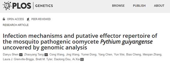 4月27日,该研究成果以“Infection mechanisms and putative effector repertoire of the mosquito pathogenic oomycetePythium guiyangense uncovered by genomic analysis”为题在国际知名学术期刊《PLoS Genetics》上发表。博彩投注