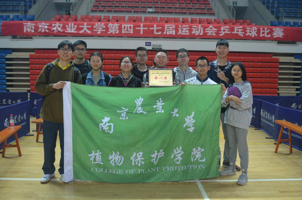 4月13日,南京农业大学第47届运动会乒乓球比赛在体育中心圆满结束。植保代表队力挫强敌,勇夺桂冠。