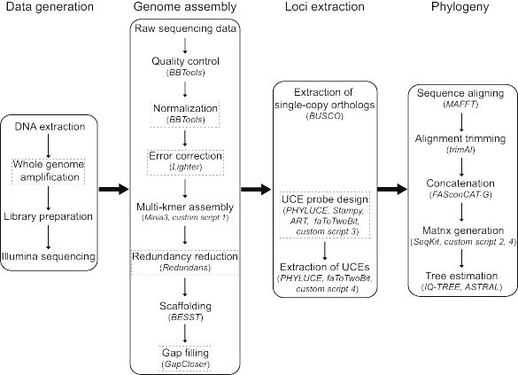 昆虫分类团队在国际著名生态与进化学术期刊Methods in Ecology and Evolution(影响因子6.363,五年影响因子9.881)在线发表了题为“Phylogenomics from Low‐coverage Whole‐genome Sequencing”的研究论文。该研究提出了一种新的基于全基因组鸟枪测序法(WGS)的分析流程,可以从低深度测序的基因组数据中快速从头组装基因组,并使用一系列高效的生物信息学工具来提取常用的系统发育基因组分子标记。博彩投注-博彩网站推荐