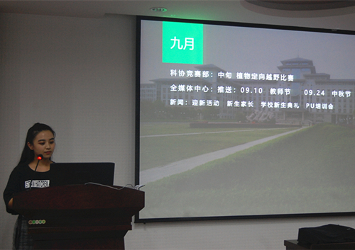学生会、中华虎凤蝶保护协会、植物保护协会的共用活动场地,物品繁多,空间有限,需要大家共同爱护;科协主席荆诗韵讲到,学生会将面向全体成员进行常用办公软件、宣传策划、基本礼仪等系列培训,以促进学生会工作高效开展;副主席李同鑫向大家传达了2018级迎新晚会的任务安排,此次晚会将打破以往按部门分工的方式,改为按职能招募宣传组、演员组、场控组、文职组、舞美组、机动组等六个小组的志愿者,充分融合学生会以及调动新生的积极性;团委副书记吴贺为大家介绍本学期的素质拓展和志愿服务活动,包括定向越野、明城墙调研活动、紫金山登道活动、天文台讲解等,引导大家服务社会;最后,学生会主席欧阳雪传达了各部门在接下来九十月的大事安排,希望各部门既能分工明确,又能协同合作,共同打造强大而温暖的“植保一家”。