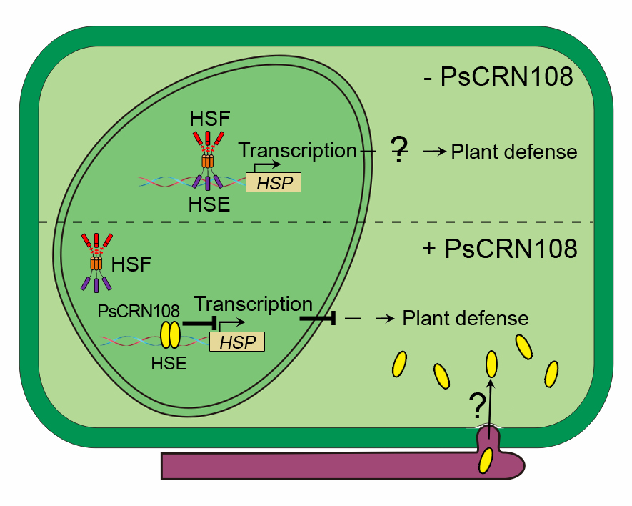 疫霉菌通过产生效应因子来破坏植物的抗性造成侵染;植物为了防御,进化出抗病基因来识别关键的效应因子,从而介导植物抗性的发生;在生产上由于单一抗病基因的大量使用,病原菌又进化出新的效应因子来逃脱抗病基因的识别,造成作物抗性丢失和病害流行成灾,因此效应因子是病原菌致病成灾和植物抗性利用的关键要素。本研究发现疫霉菌有一类具有结合寄主DNA活性的效应因子,该效应因子通过与寄主基因启动子结合干扰寄主防卫相关基因的表达,从而破坏植物抗性。
