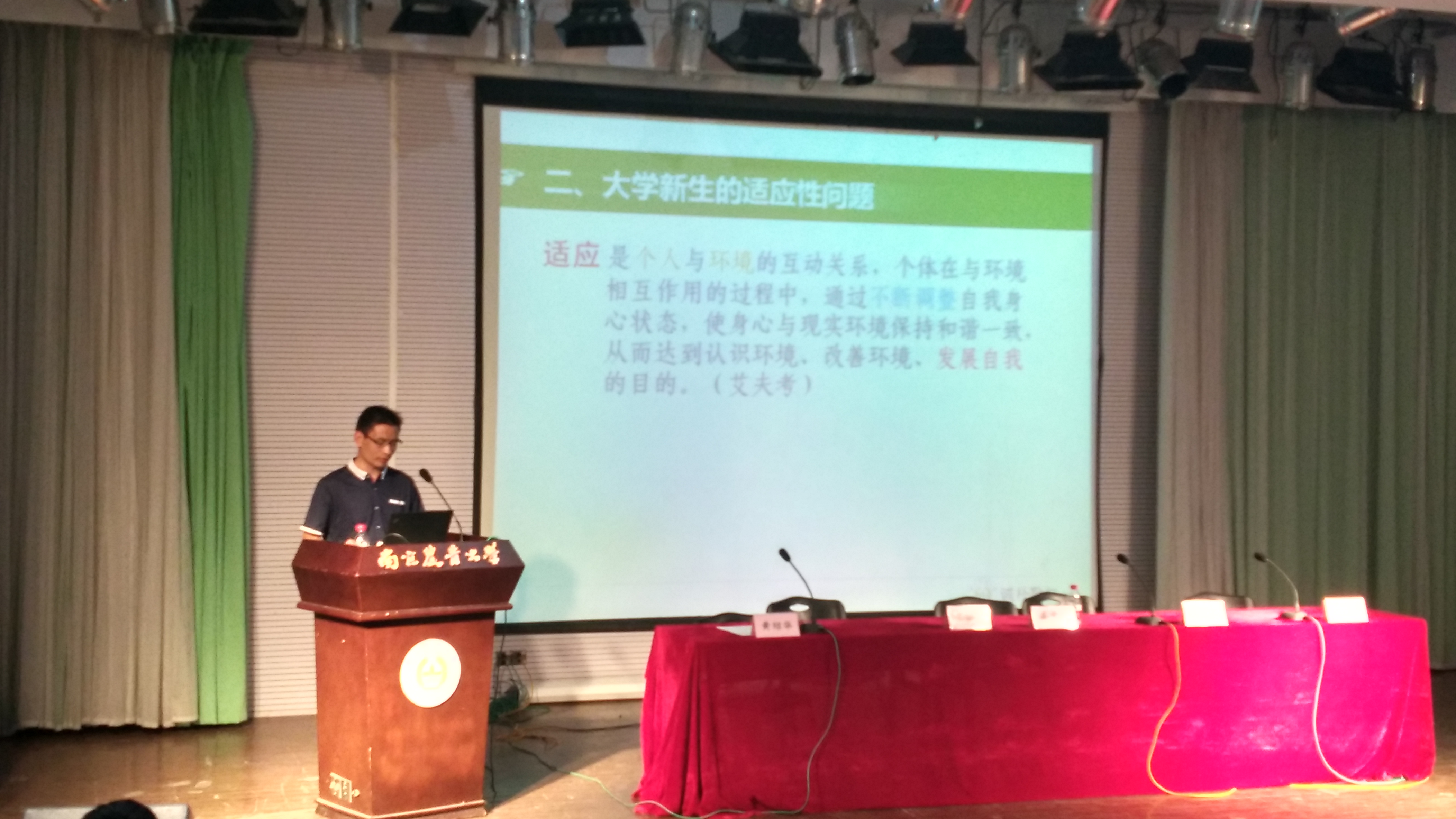 9月21日下午四点,博彩投注 2015级新生入学教育大会在教四楼报告厅顺利举行。副院长高学文,昆虫系系主任王备新教授、农药系系主任叶永浩教授和植病系副系主任窦道教授龙出席大会,院党委副书记黄绍华担当主持人。 会上,高学文围绕植保专业的院系设置、师资力量以及科研基础等方面进行了框架性的介绍,并分别就科研和教学两个方面总结了博彩投注 的成果。 大四学生代表裘雯婷巧妙取用自己名字的谐音“求,稳,挺”三个字分享了自己在大学的学习生活体会,希望新生们能懂得求索、稳重和坚挺。 三大教授依次从发展历史、学科实力以及科研成果介绍自己所在学科,让新生对本院学科有个大致了解,方便其提前考虑自己将来的学习方向。 随后,黄绍华对新生进行适应性教育。他从大学生活特点出发,给新生们支招,告诉他们如何解决在大学适应期中遇到的问题,并针对学习、生活以及人际关系三个方面进行详尽介绍。他希望同学们在大学这块追求理想的净土上努力耕耘,在四年时光中掌握专业技能,塑造优秀人格。