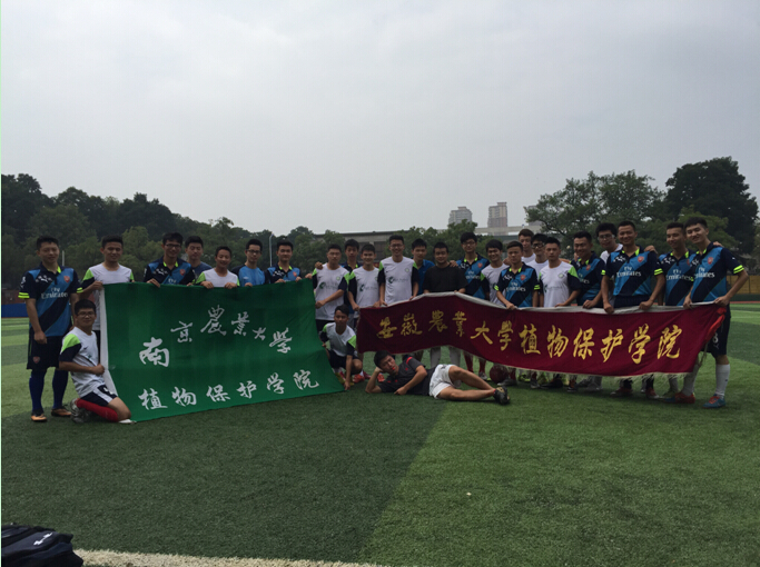 正午12点,比赛哨声准时吹响。安农植保队主场身穿蓝黑相间的阿森纳球衣,南农植保身穿银白球衣做客球场。比赛一开始,在短暂的相互试探之后,双方就进入了激烈对抗中。第21分钟,南农植保队获得了位置较好的禁区前任意球机会,9号王地杨抄刀主伐。哨声一响他没有立即射门,而是在迅速观察进攻队员的跑位情况后将球轻巧一挑,皮球越过人墙,落到前锋叶尔森脚下,叶尔森起脚便射,然而对方门将站位适当封住了射门角度,球遗憾被门将没收。