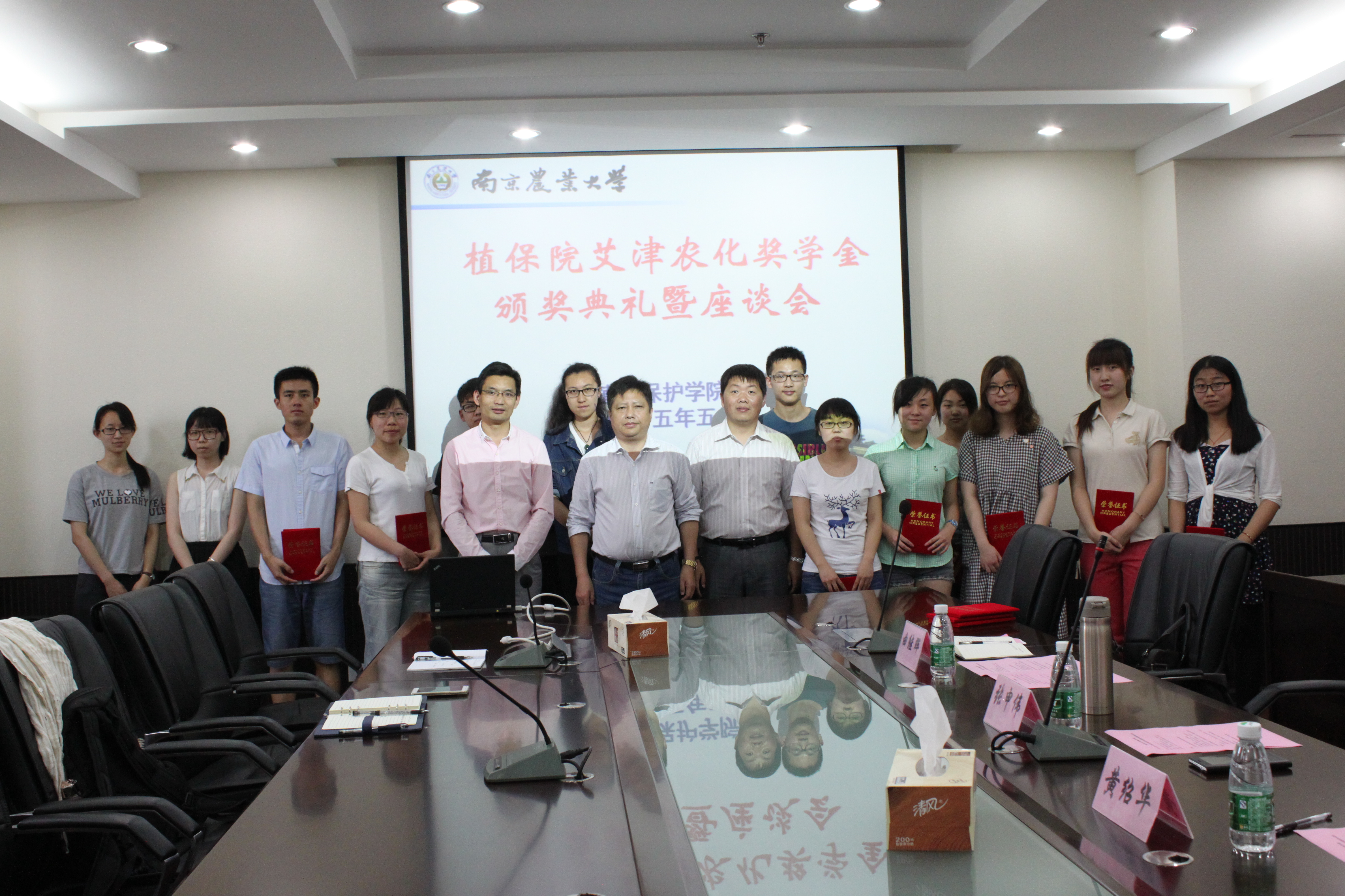 在理科楼C306报告厅召开2013—2014学年艾津农化奖学金颁奖典礼暨座谈会。江苏艾津集团董事长张申伟,人力资源与行政中心主任屈继辉出席典礼。本次典礼由博彩投注