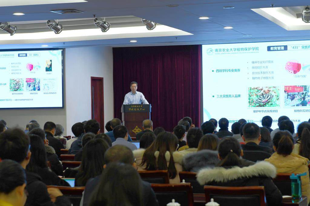 2019年度学术年会在翰苑举行。我校校友、江苏省植物保护植物检疫站站长田子华,退休教师代表沈晋良教授,学院领导班子成员、全体教职工以及部分研究生参加了年会。