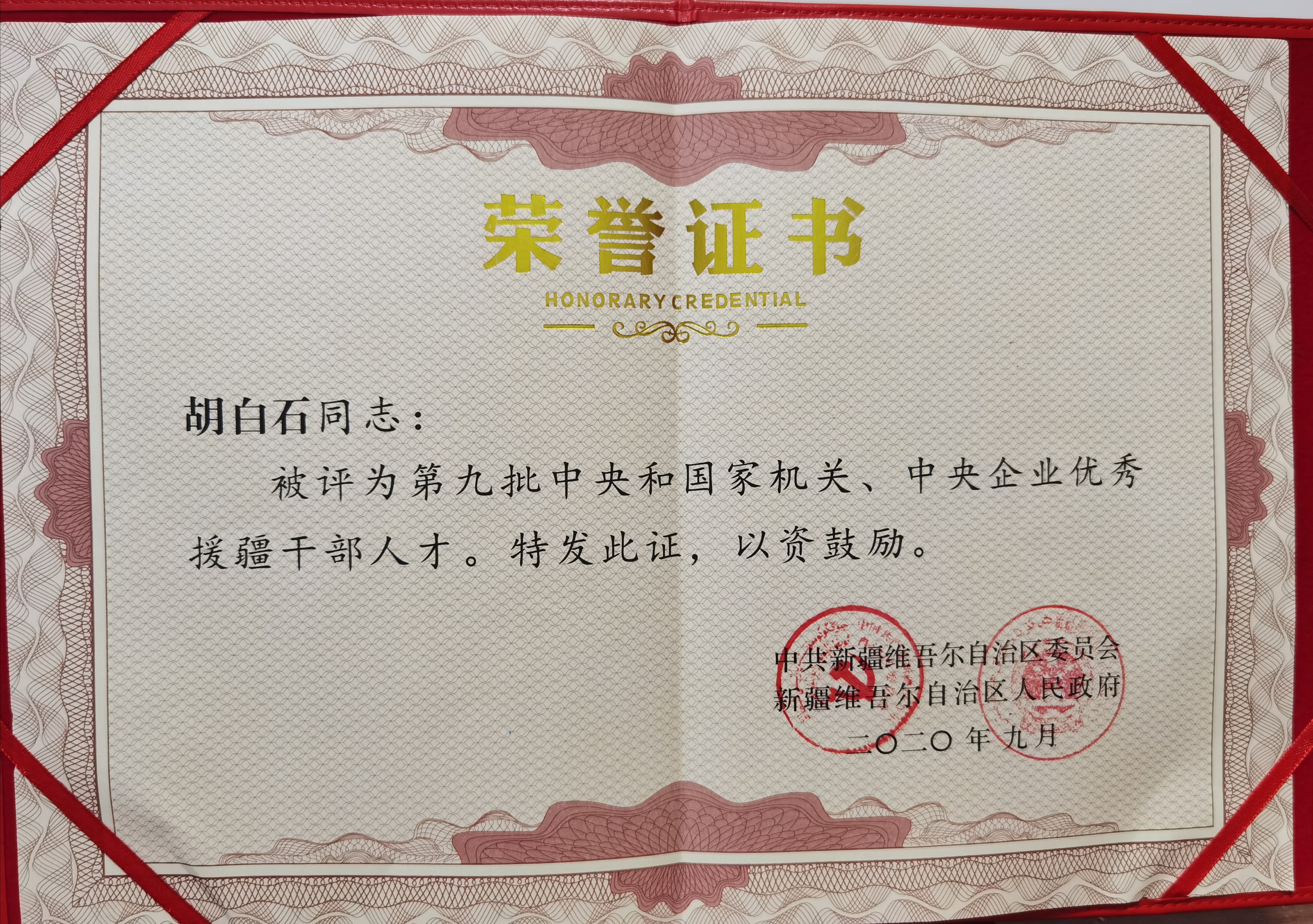 心之所系、情之所牵。在即将结束援疆之时,胡白石教授已申请继续加入第十批援疆干部人才队伍,继续为热爱的家乡做更多、更大的贡献。