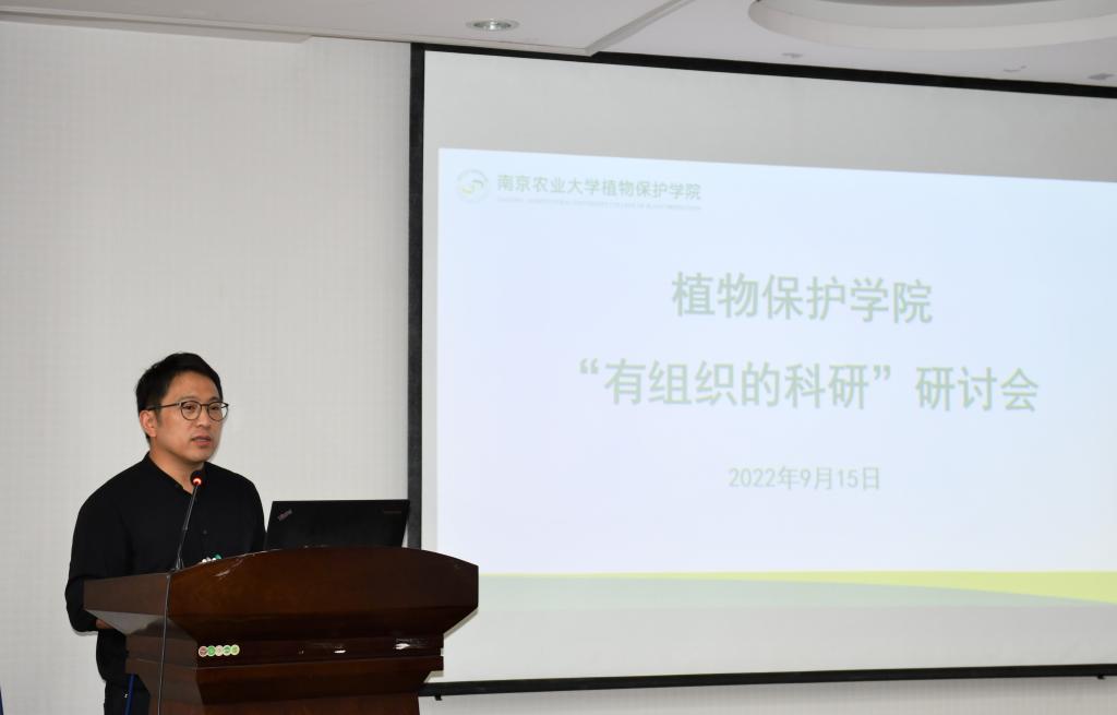 董莎萌做“有组织的科研”主题报告,从为什么,怎么做等角度展开“有组织科研”的思考,深入剖析当前科技形势,探讨科学研究模式变迁。“有组织的科研”要做到规划有组织、过程有组织、科研链条各环节有组织,学院的教师要在“有组织的科研”中找准定位,紧密围绕国家现实需求,聚焦农业真问题,强化组织协调,真正做到“国家需要做什么,我们就做什么”。