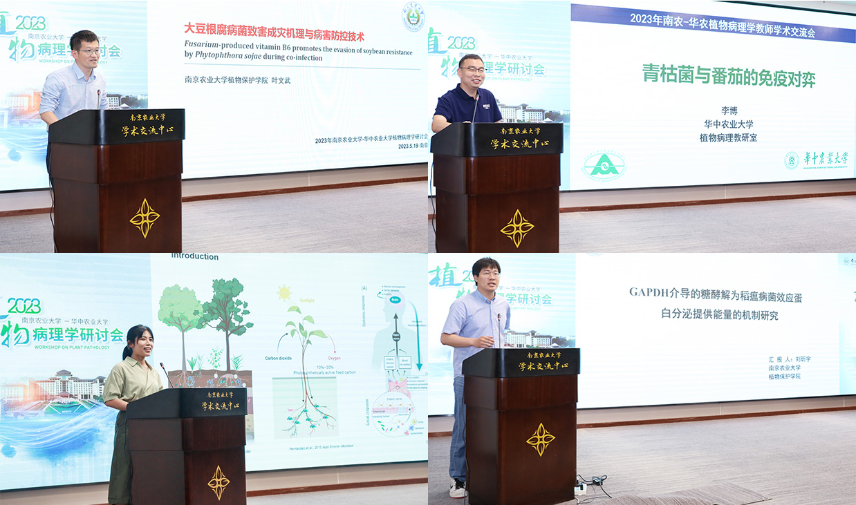 5月19日,“2023年南京农业大学-华中农业大学植物病理学研讨会”在南京农业大学顺利召开。华中农业大学植物科学技术学院植物病理学系教师一行11人、南京农业大学植物病理学系全体教师和部分博士生共计150余人参加了此次学术研讨会。
