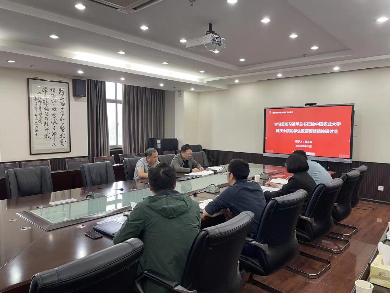 主题教育读书班在理科楼C306开展集体学习研讨,院长张正光领学习近平总书记给中国农业大学科技小院的学生重要回信精神,院领导班子以及部分师生代表参加会议。