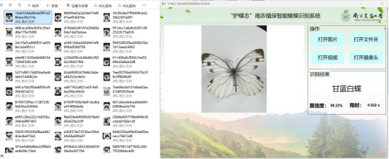 直面这一困境,“金陵有蝶”团队依托ResNet18与YOLOv8图像识别算法,将两千余例蝴蝶图集标注数据用AI技术整合,开出了数字化“药方”——“护蝶志”微信小程序。然而,技术攻关同样不易:拍摄环境、设备支持跟不上,初始图像质量不佳,代码“跑飞”更是家常便饭。技术组成员干脆“闭关”钻研,“磕”算法编程、“缠”专业教师。“这些采集的标本和数据,正是小程序‘活的教材’,”带队老师王萌说,“我们不仅要摸清蝶类资源家底,更要让公众通过指尖上的工具,直观理解蝴蝶与生态、乃至人与自然密不可分的共生关系。”