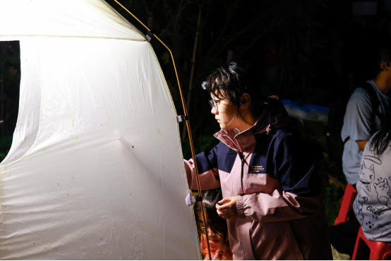 这片广阔的“露天课堂”里,日均徒步12公里、汗水浸透衣衫,蚊虫叮咬等成了成员们的常态。密林深处、溪流之畔,团队成员一手捕虫网,一手采集瓶,腰间挂满工具和三角纸袋,在不同海拔和植被带“地毯式”搜寻目标物种。面对采集到的形态各异的蝴蝶,辨别种类成了一大难题。“啃”专业图鉴、请教昆虫系老师、日均2小时鉴定学习成了成员们的日常。依照“不过度采集、不破坏生境”的原则,数十天的调研里,成员们科学采集、规范处理了涉及凤蝶、粉蝶、蛱蝶科的45种、总计127只蝴蝶标本,同步梳理记录39种关键寄主植物,拍摄上千张生态与标本照片,为后续工作打下了坚实基础。