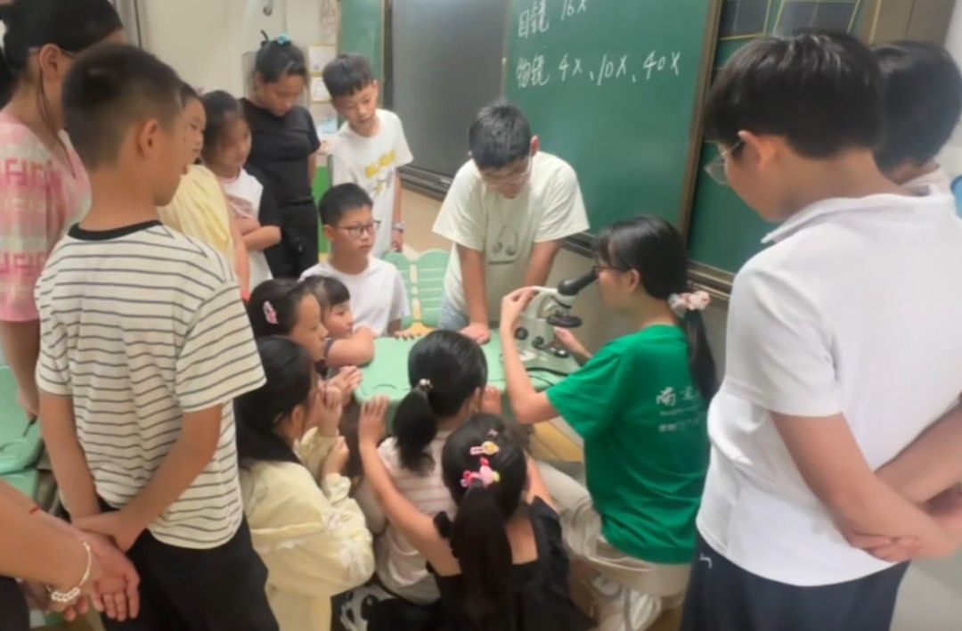 “汶溪田野,生态育人”实践团在专职团干部夏健鑫指导下,联合南京市高淳区汶溪小学,面向三到五年级学生开展暑期研学实践活动。此活动旨在引导孩子们认识植物、昆虫与环境的相互关系,树立保护生态环境、爱护绿色家园的意识,培养科学思维、观察能力和实践技能。