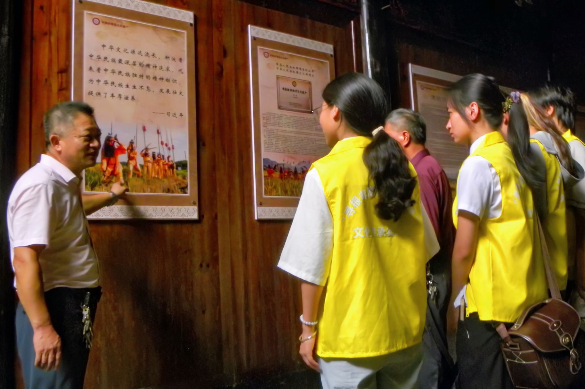 乐安县鳌溪镇罗山村“打戏头古”源于英雄杀敌的传说,融合当地习武风俗,寓意祈求傩神保佑全村平安,风调雨顺,五谷丰登。在江西省首个村级傩文化展示馆内,实践团成员认真倾听驻村第一书记王国庆细致讲解罗山傩舞文化内涵,感受国家级非遗的千年独特魅力。据了解,王国庆扎根基层,把非遗傩文化传承与推进乡村振兴有机结合,将罗山傩舞从华丽舞台搬到田间地头,并创新性开展傩舞进校园活动,为罗山村注入持久的文化活力。在傩面具展示馆内,罗山傩舞第37代传承人曾明亮向实践团成员热情介绍道:“罗山‘打戏头古’有8对傩神面具及17个傩神角色,分别对阵表演,呈现古代朴实神秘、极具神韵的故事情节。”实践团成员通过亲手触摸傩面具,了解傩面制作原料及方法,探究傩面具的艺术风格,深刻感受到“摘下面具是人,戴上面具是神”的神秘傩面文化色彩。