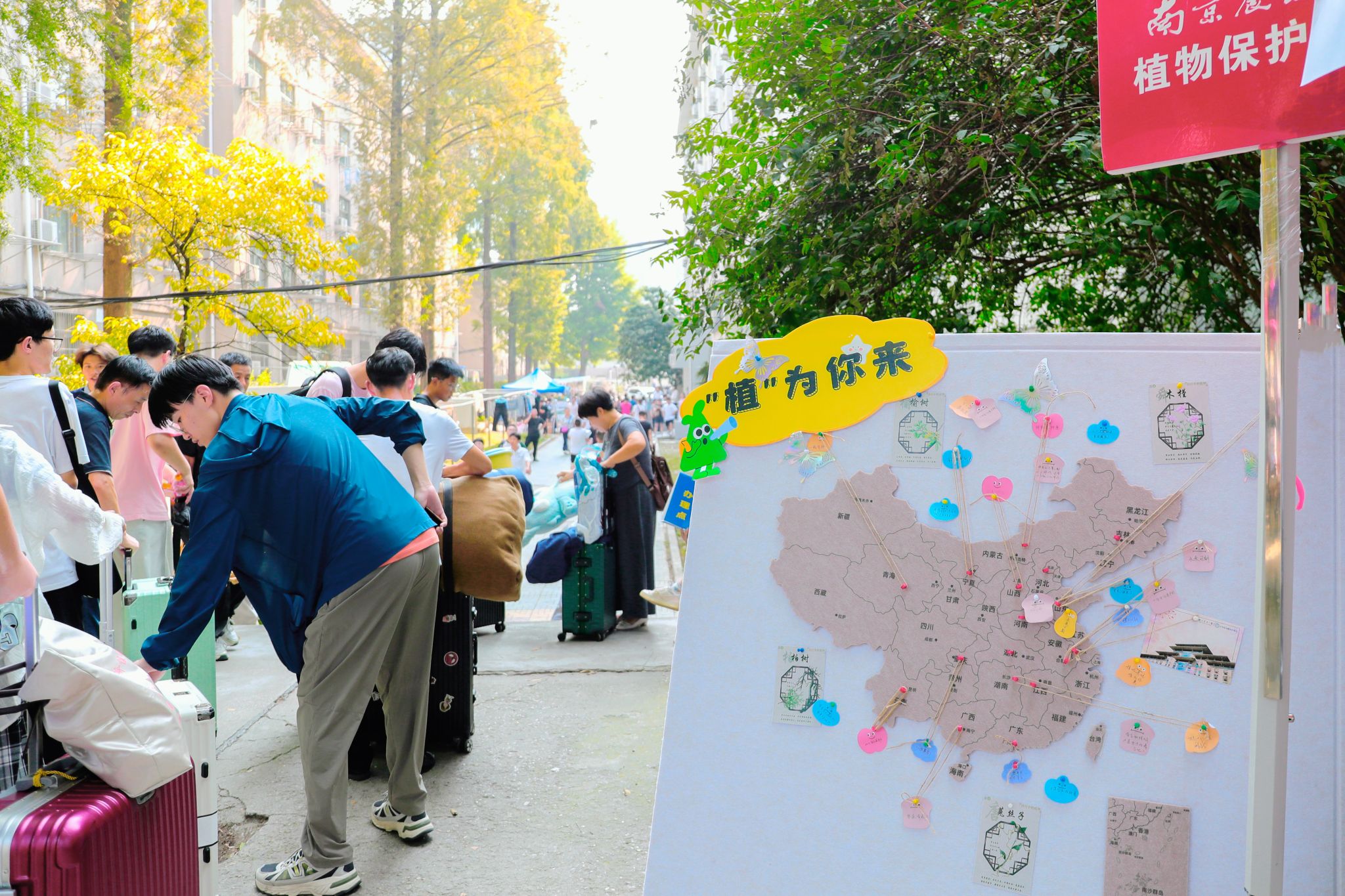 的热情与巧思:“大树”签到牌,一叶一新生,祝福他们在植保的沃土中生根发芽、茁壮成长;特色地图墙,描绘来自天南海北的大家,记录入学时最真挚的成长祈愿;香酥可口的蚕蛹,威武霸气的独角仙,栩栩如生的蝴蝶标本,精美详细的校园植物名录,让新生直观感受植保特色……