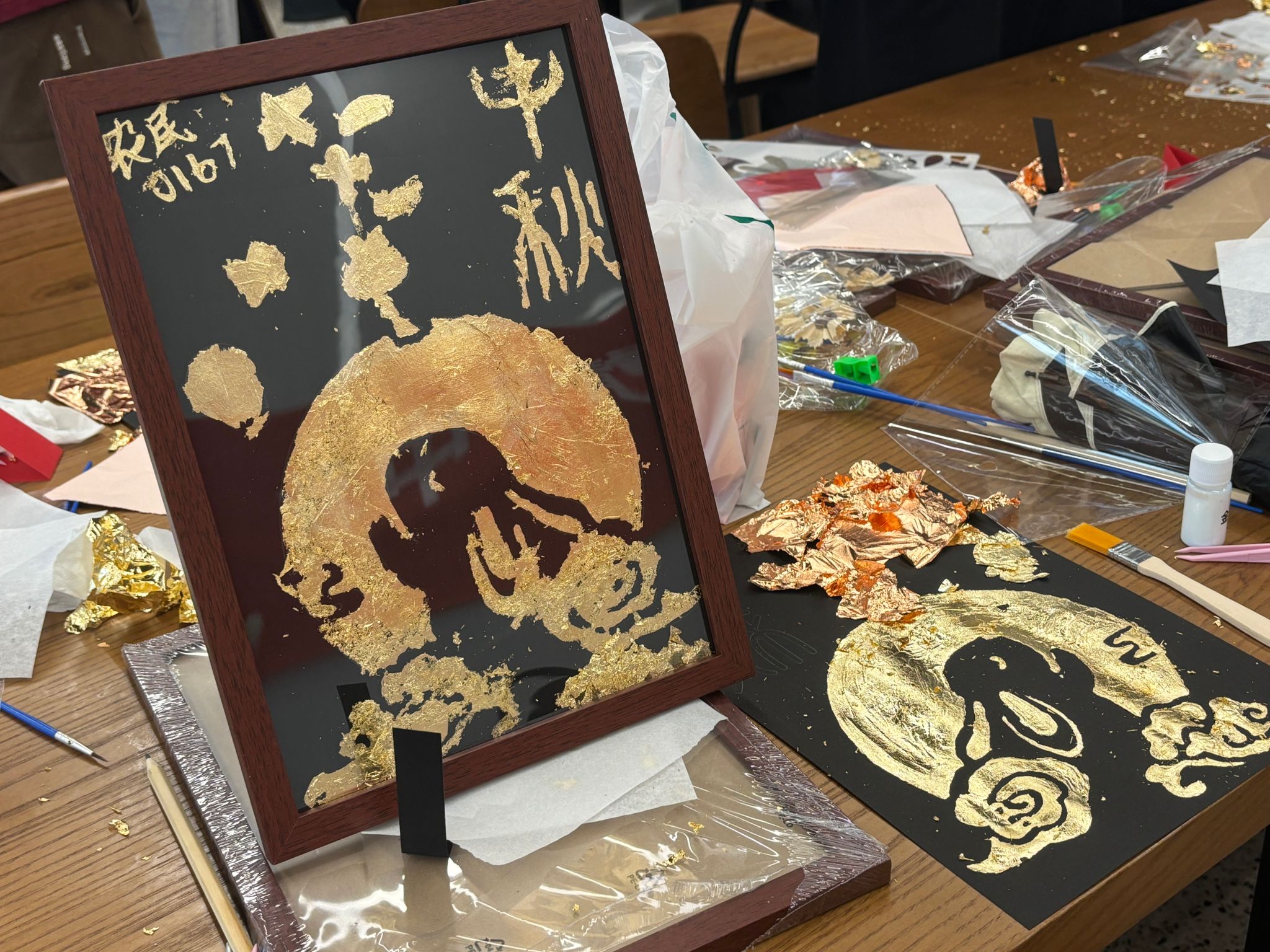 首先,是拓印DIY环节,在工作人员的组织下,大家了解了拓印的基本原理和操作,随后便进入动手操作。大家积极动手,享受拓印的无限乐趣,或是拓印玉兔,或是拓印月盘,或是拓印对未来的展望,每个人手中都拓印出独属于自己奇思妙想的作品。