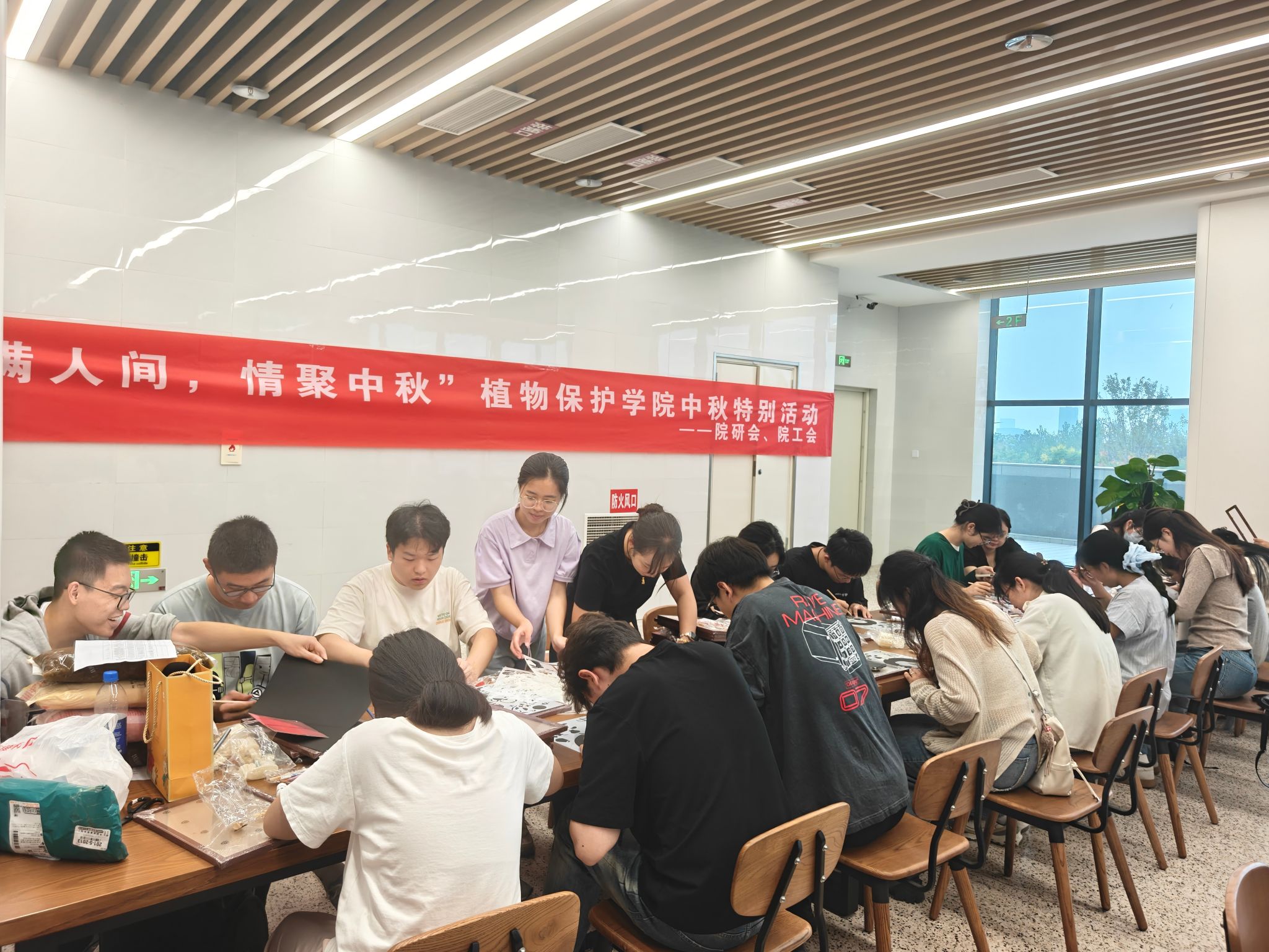 9月29日在滨江校区朴院食堂组织开展了“月满人间,情聚中秋”中秋活动。学院教师代表与三十余名同学欢聚一堂,共同拓印非遗烧箔画、制作月饼,共享美好佳节。