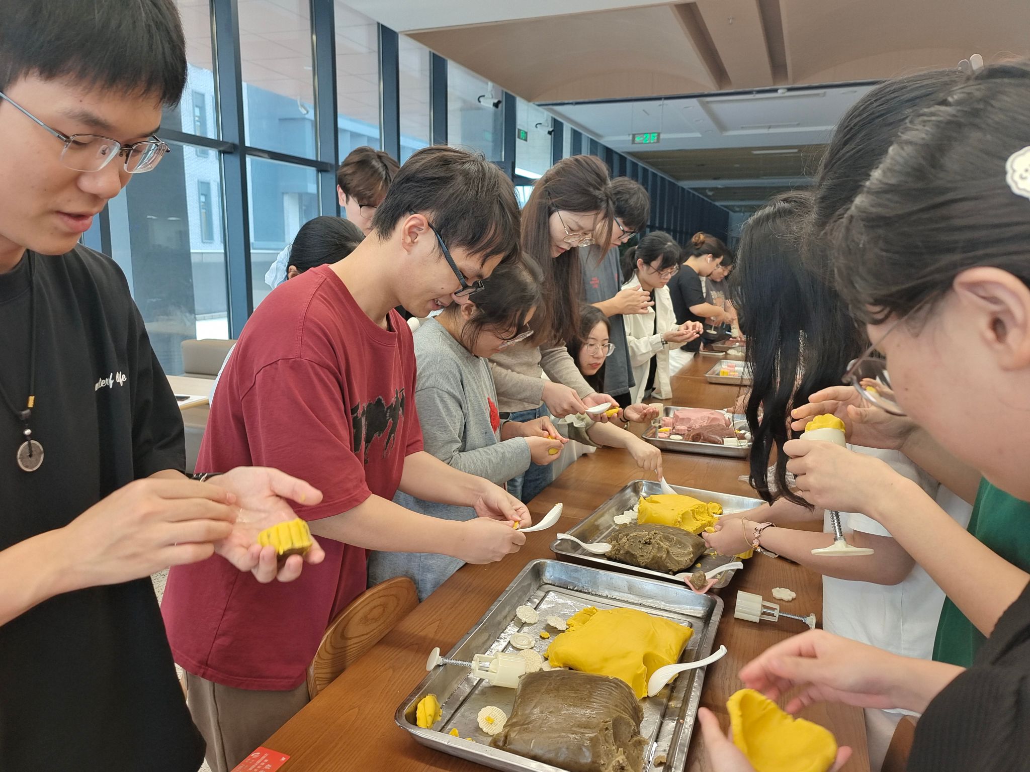 活动最后,在食堂员工的帮助下,大家将做好的月饼进行烤制。面对自己劳动的成果,大家或拍照打卡,或打包带给同伴分享,或是品尝独属于中秋的味道,温馨与欢乐充满了现场。