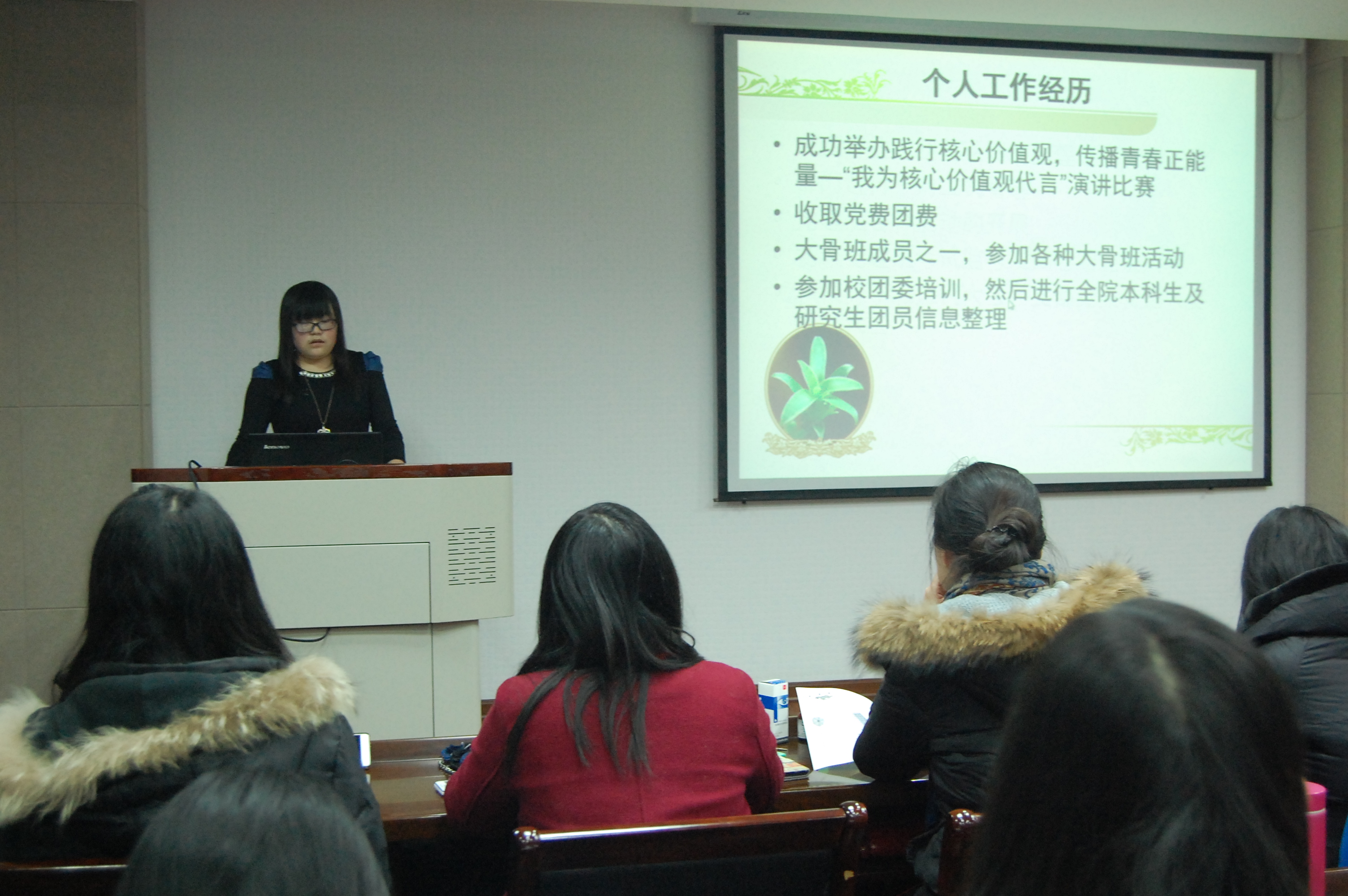 团委学生会年终述职汇报会在理科楼C305成功举行。院辅导员李艳丹和主席团任评委,院团委、学生会各部门部长总结汇报2014学年各部门工作,会议由院学生会主席何凡主持。