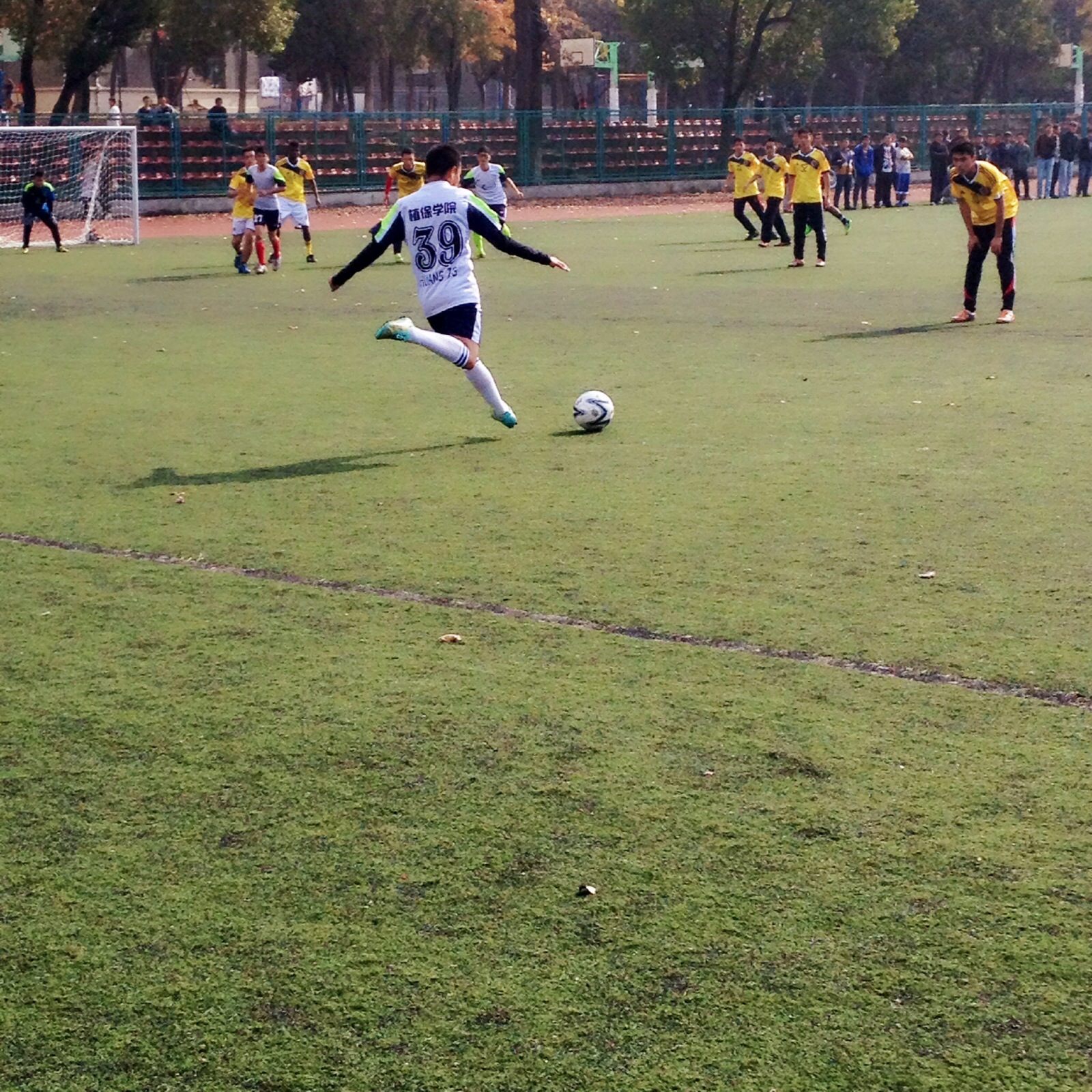 在学校田径场北半场上迎战食品院,双方队员热情高涨,畜势待发,经过激烈比拼,博彩投注
