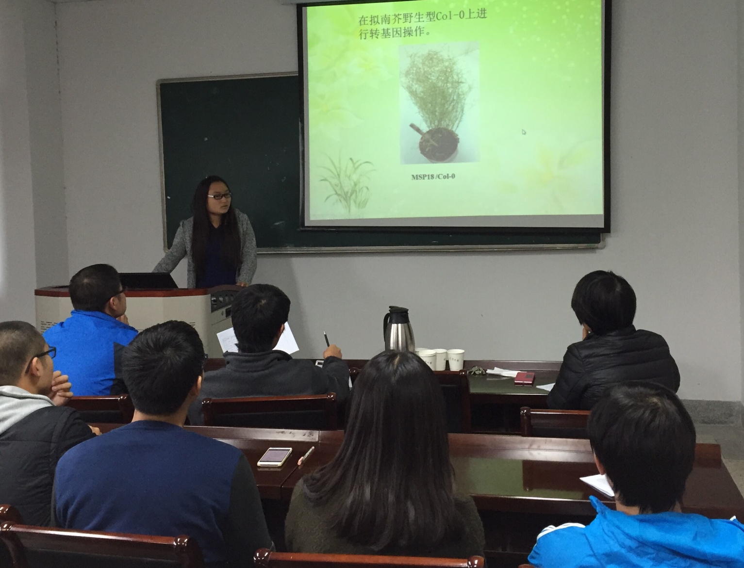 各小组通过PPT的形式展示着本组项目在前期中的进展情况,分享内容大致可分为三点,项目前期已完成工作、后期实验安排以及参与项目过程中的心得体会。