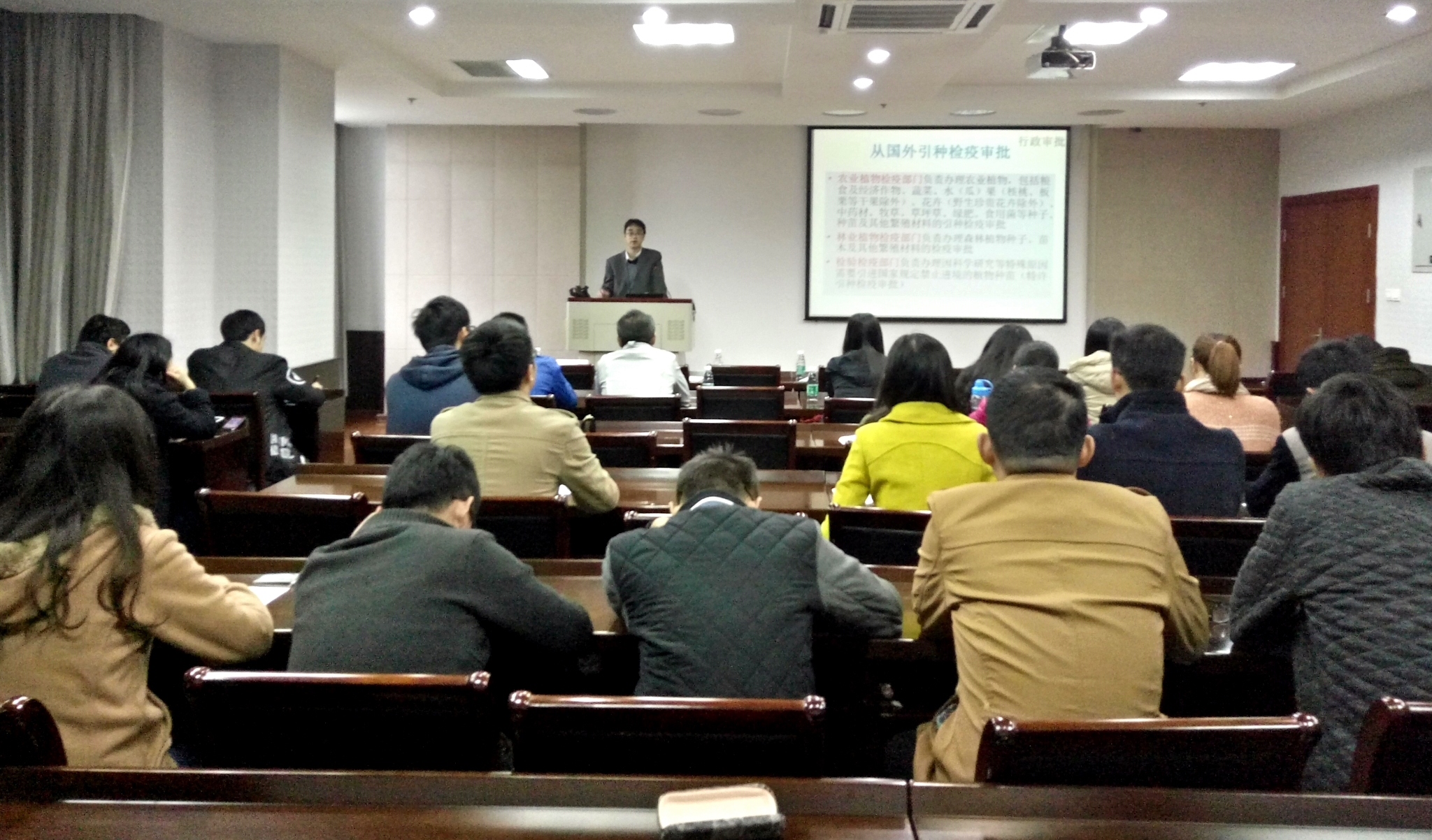 邀请全国农机推广中心质检处副处长冯晓东于理科楼C305做关于植物检疫学发展和现状的报告。该报告使植保学子更加深入地了解到与植物检疫有关的时事以及其发展与进步的历程,并为同学们朝此方向发展做出正确引导。