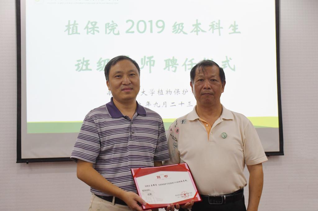 2019级本科生新生开学典礼暨班级导师聘任仪式在理科楼C303成功举办。王荫长、沈晋良、吴耀清、文玲等四位退休老教师受聘为新生班级导师。大会由学院党委书记邵刚主持。
