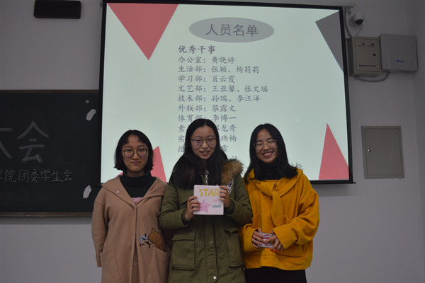 团委学生会在主楼134召开了年终大会。会上,主席欧阳雪和大家一起回顾了一年来学生会工作的成果,表彰了优秀干事和志愿者,并对即将到来的2019年作出了展望。