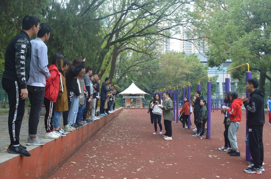 之后,大家来到下马坊公园进行最期待的定向越野活动。在白T恤上签字留念后,根据游戏规定,大家按照事先划分的小组,在不同的时间出发,沿路寻找地图上标明的黄色彩旗点。齐心协力找到彩旗后,大家与彩旗合照,证明任务完成。最后,每组均找到了对应的彩旗,每位参与的同学都获得了奖品。