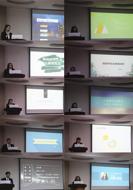 首先,现学生会副主席邵子恺代表第十八届团委学生会进行工作汇报,带领大家回顾了一年多来学生会走过的点点滴滴。随后,在热烈的掌声中,10位竞选者按着抽签顺序依次走上讲台,围绕个人简介、自身竞选优势、对工作岗位的认识以及对未来工作设想等方面,展开竞选演讲,并就在场老师和同学们提出的问题进行答辩。竞选者们自信大方的仪态和自然流畅的表达,赢得了观众的一片片热烈掌声,将现场气氛逐渐推向高潮。