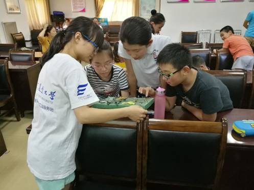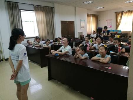 看到这些比自己高出几个头的大哥哥大姐姐,小朋友们兴奋不已,完全没有因酷暑而影响兴致,在大哥哥大姐姐自我介绍时还积极与他们互动,充满生机与活力。