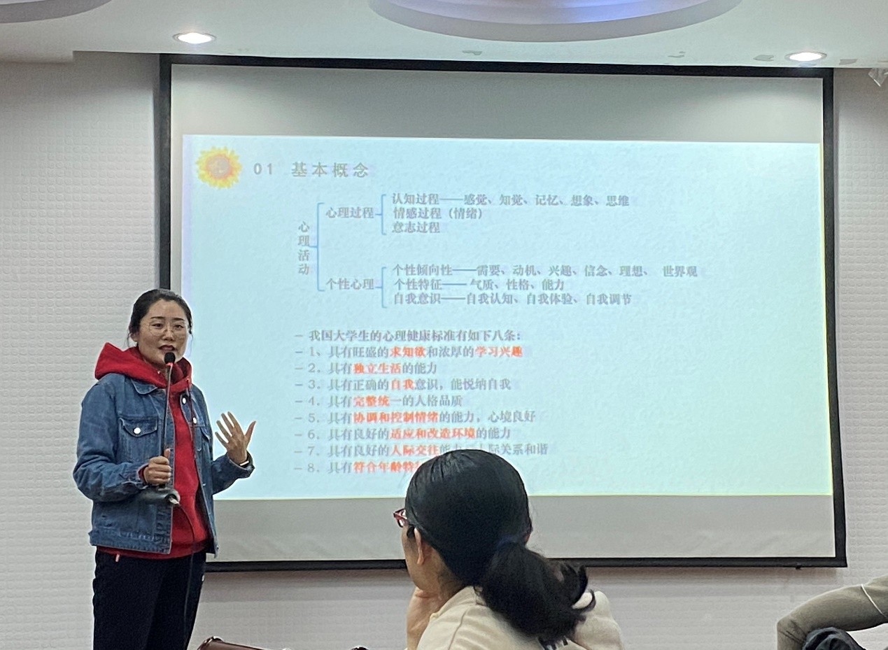 培训前,武昕宇从心理健康的基本概念介绍了研究生的心理健康标准,讲授了辨别心理障碍的标准以及怎样应对的措施。