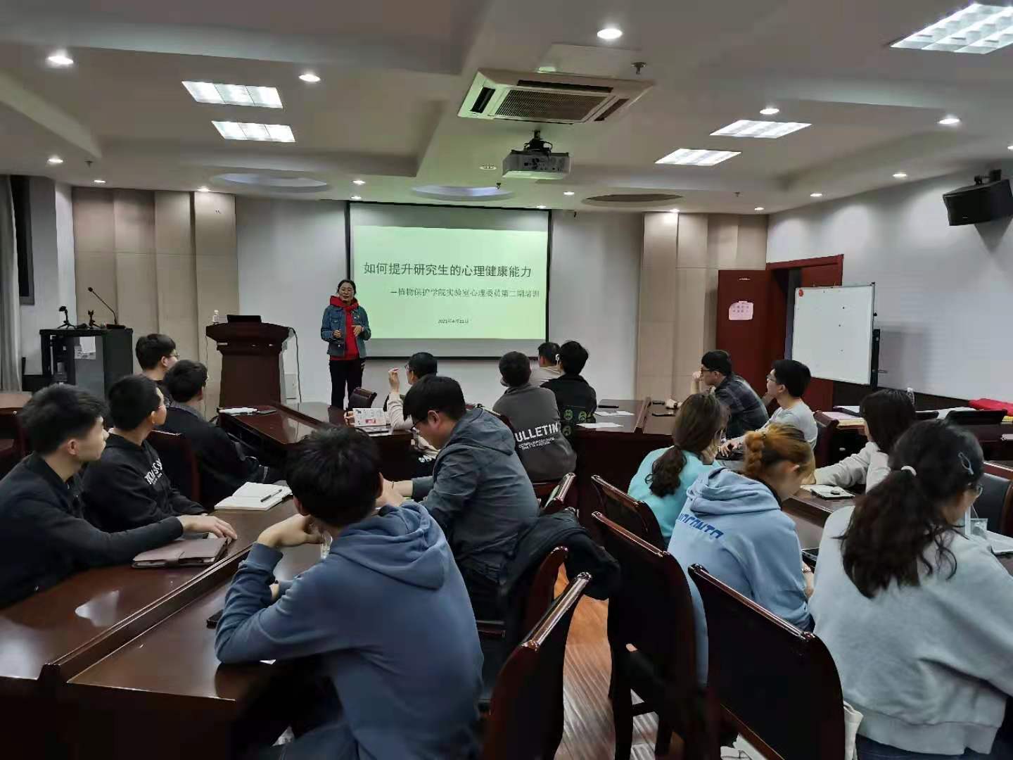 在理科楼报告厅举行了实验室心理委员第二期培训。本次培训特邀请草业学院团委书记、心理健康咨询师武昕宇老师担任主讲人,研究生辅导员罗舜文出席培训。