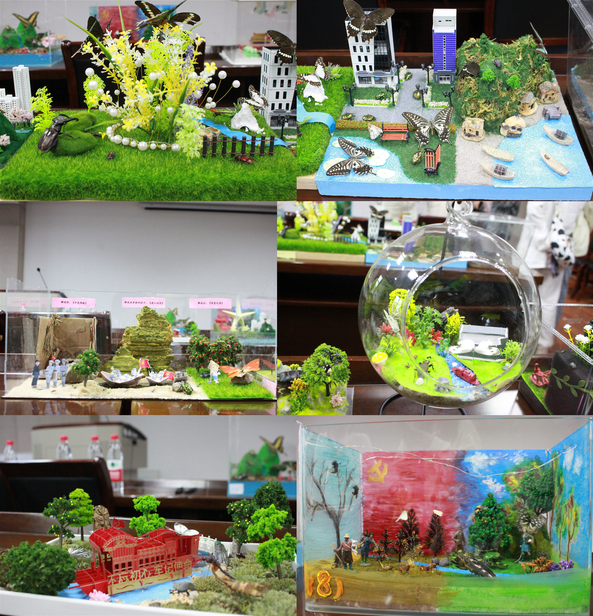 比赛前,选手们手握捕虫网,走向户外、走进紫金山,体验了植物保护专业《普通昆虫学》课程的实践教学环节之一——户外捕虫和灯诱,也为微景观创作积累了不少“可爱”素材——各种各样的昆虫:甲虫、瓢虫、绿金龟、凤蝶、蛱蝶等。他们用专业技能和丰富创意,借助昆虫的习性与特征,展现了建党百年来生存条件、生态环境的变化与更迭。
