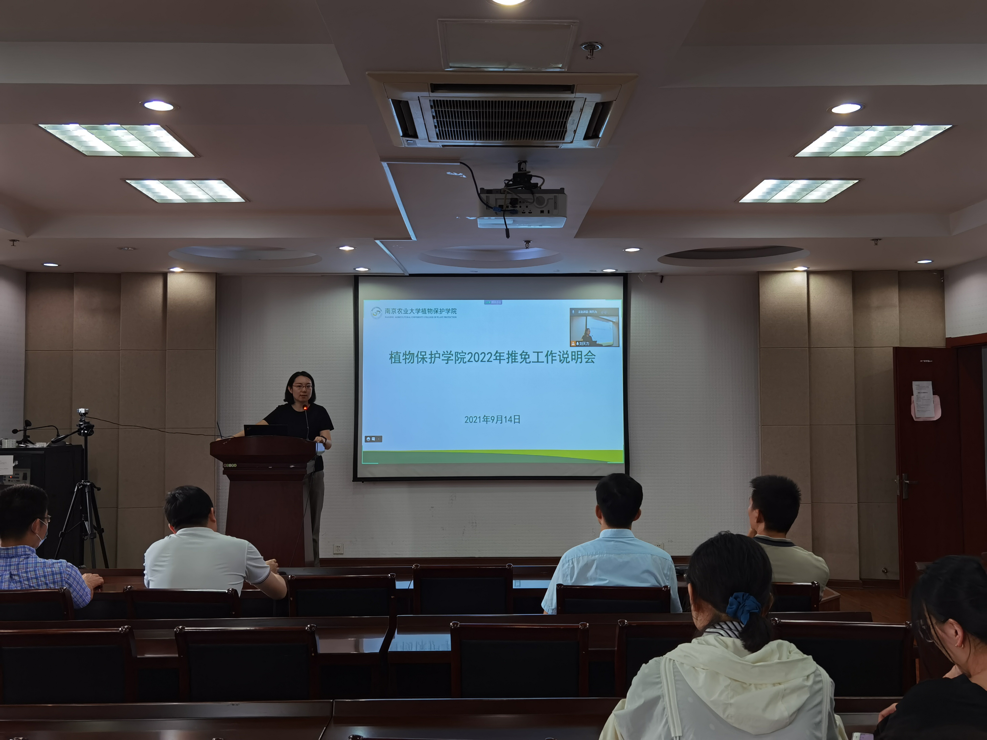2022年推免工作说明会在理科楼C303举行。学院院长张正光,副院长叶永浩、王兴亮,农药系学科点长刘泽文,植病系教师代表牛冬冬,本科生辅导员李艳丹和部分意向推免的大四学生参加。会议由学院党委副书记吴智丹主持。
