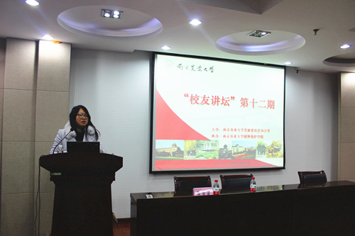 承办的南京农业大学第十二期“校友讲坛”在理科楼C303举行。本次讲坛邀请到法国最大农业公司Invivo研发登记部门主管经理、我校欧洲校友会秘书长翁芳芳担任主讲人,报告题目为:浪漫法兰西土地上的南农人。