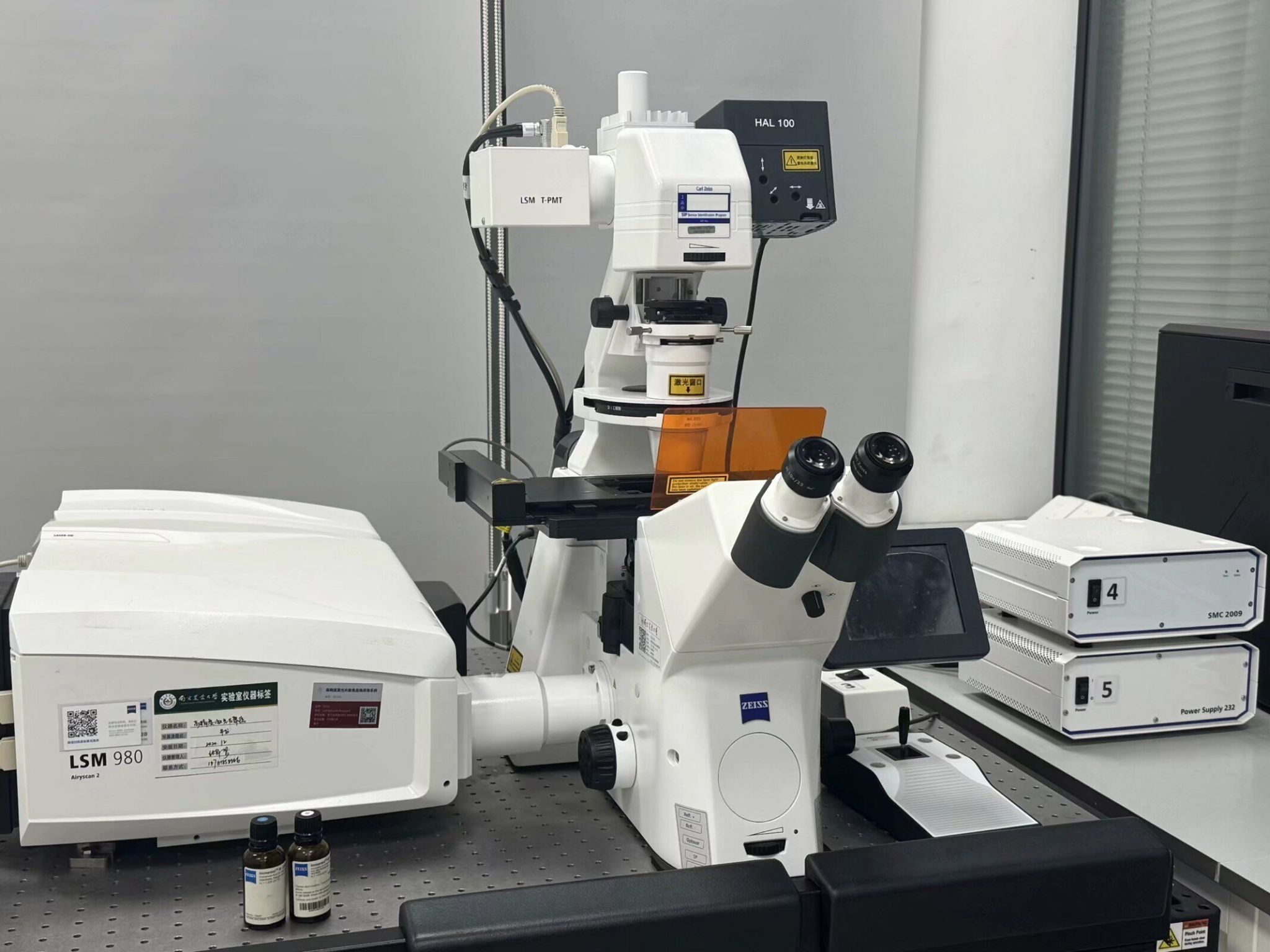 蔡司 LSM 980具有405/488/543/594/639nm五个激光器,配置了10x/20x/40x(W)/63x(W)/63 x(Oil)物镜。该设备可逐点扫描样品,也可以同时扫描多个点,将像素信息组合成图像获得具有高对比度和高分辨率的 x、y 和 z 光学切片。与此同时LSM 980 配备了 Airyscan 2 探测器,搭载32GaAsP检测器,实现高速超分辨成像。支持进行FRAP、FRET实验。