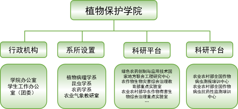 学院是我国现代植物保护人才培养的主要起源地,经过近百年的发展,形成了优良的教学团队和学术梯队,坚持教学科研并重,旨在培养具有远大理想、社会责任感和国际视野,知识、能力、素质综合协调发展,具有求实创新精神和社会竞争力的拔尖创新人才。